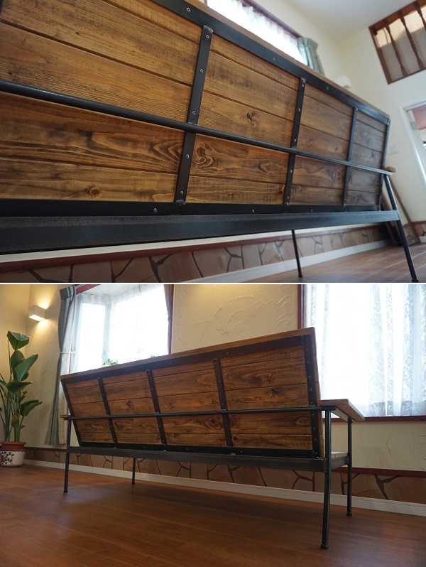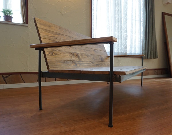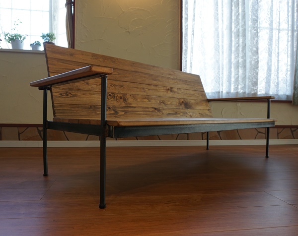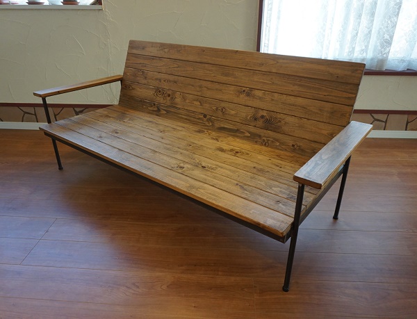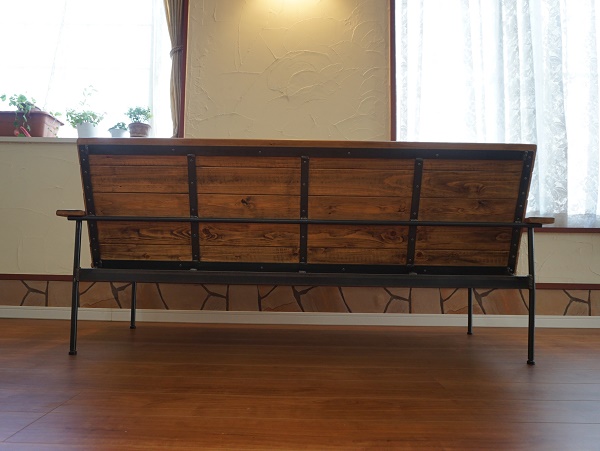 - > 【 美品 】 北欧モダン ヴィンテージ調 天然木 × 鉄脚 アイアン 長椅子 ベンチ チェア 3Pソファ 3シーター 3人掛け フレンチ調 西海岸style