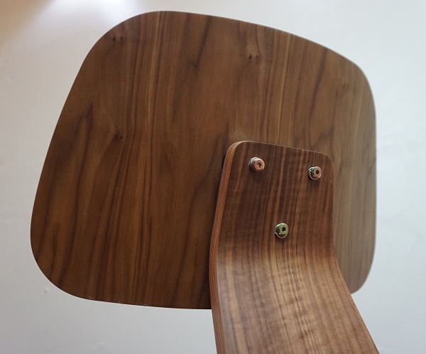 適度なしなりのある成形合板の特性に加え、脚部と背もたれには天然ゴム製のショックマウントが装着。